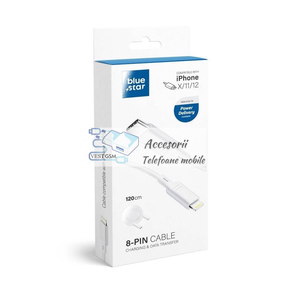 Comanda instant - Cablu de date BLUE STAR Tip C - Lightning 1,2m alb