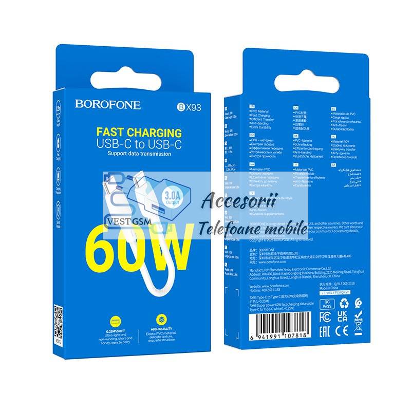 Cablu de date Borofone BX93 TiP C - Tip C 60W alb