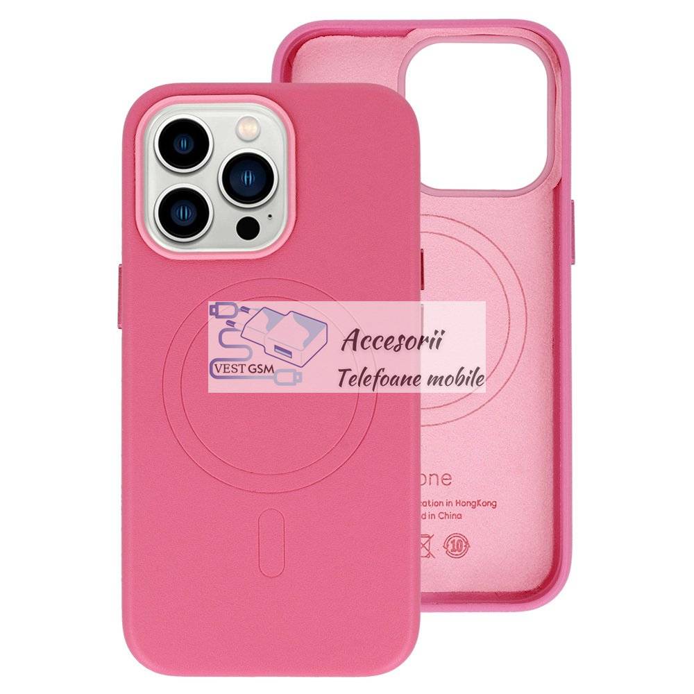 Comanda instant - Husa piele MagSafe iPhone 15 roz