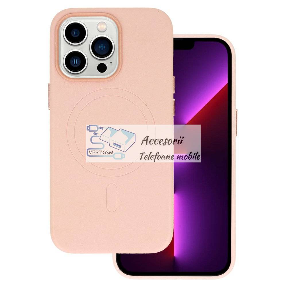 Comanda instant - Husa piele MagSafe iPhone 16 ProMax roz deschis