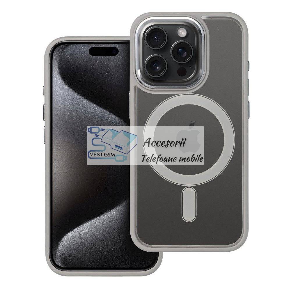 Husa silicon Color Edge cu MagSafe iPhone 15 Pro gri titan