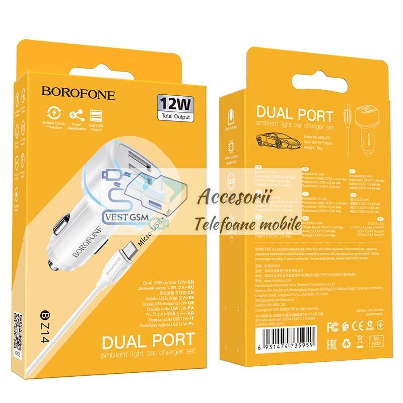 Comanda instant - Incarcator auto Borofone BZ14 Max - 2xUSB - 2,4A + cablu microusb alb