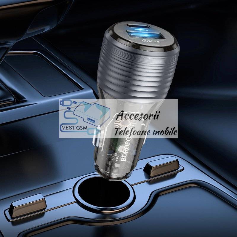 Comanda instant - Incarcator auto Borofone BZ30 USB + Type C - QC 3.0 PD 30W 3A negru