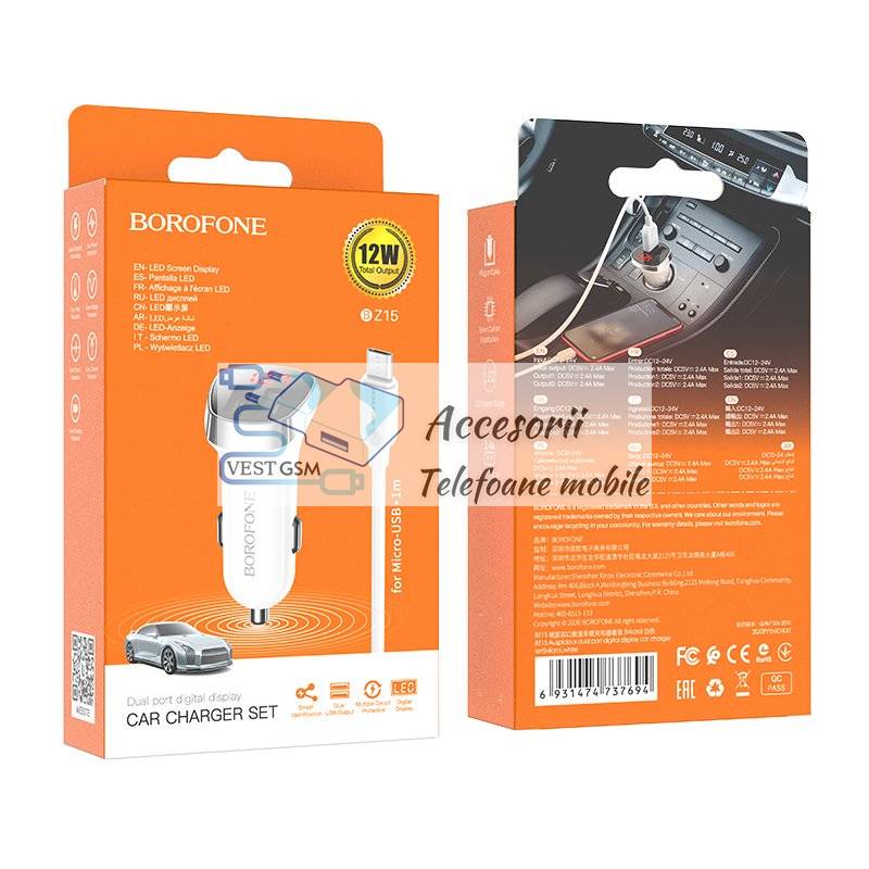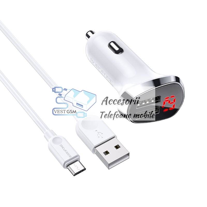Incarcator auto cu cablu de date microusb Borofone BZ15 2xUSB 2,4A