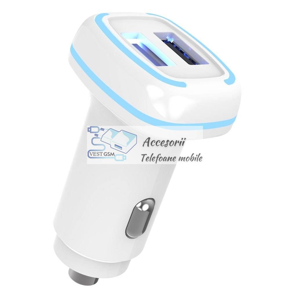 Comanda instant - Incarcator auto PAVAREAL CC61 2xUSB A, 4,8A, alb