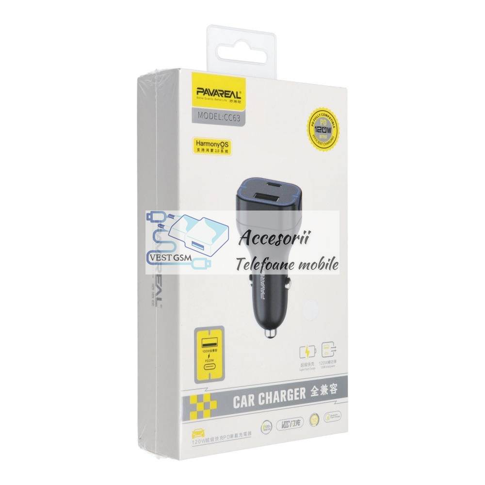 Comanda instant - Incarcator auto PAVAREAL CC63 USB A + Tip C 20W
