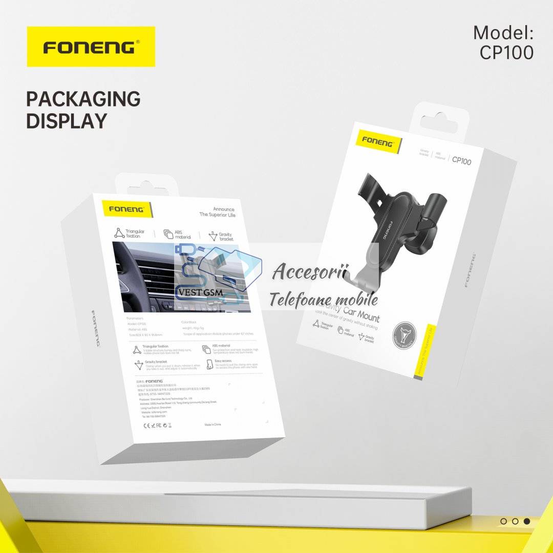 Suport auto ventilatie Foneng CP100 gravity negru